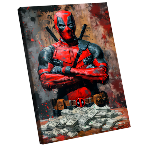 Quadro Decorativo Deadpool Money Borda Infinita - 84x54cm -