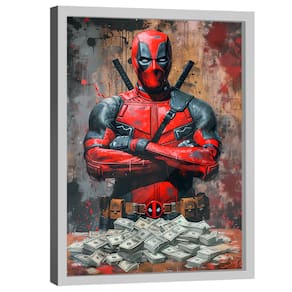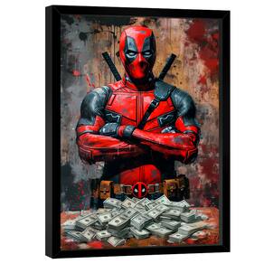 Quadro Decorativo Deadpool Money Moldura Branca e Vidro - 180x105cm -
