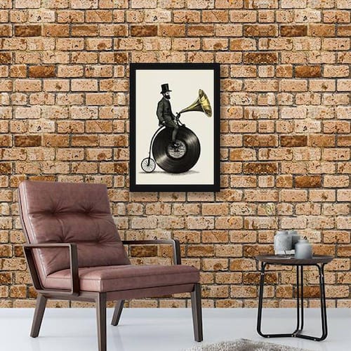Quadro Decorativo Decorativo Retrô Músico Bicicleta Antiga - Tamanho: A4 (20 x 30) / Acabamento: Película de acetato / Moldura: Madeira preta