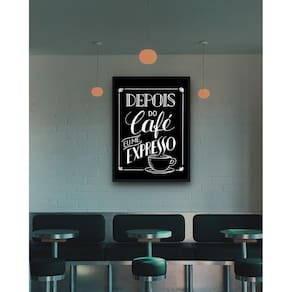 Quadro decorativo depois do café eu me expresso - 70x50cm Cor: moldura branca Informações do produto tire todas as suas dúvidas no descritivo abaixo: decoração para quarto, sala, cozinha, escritório, área gourmet e muito mais. Chega de paredes vazias medidas - cada peça tem 70x50cm . Material do papel - papel fotográfico brilhante de altíssima resolução acabamento - todos os quadros são acompanhados de vidro para proteção da imagem. - moldura em madeira maciça na cor preta ou branca conforme produto escolhido e pendurador. - os quadros são embalados de forma segura com plástico bolha com camada dupla de acordo com o tamanho dos quadros. - de 3 meses. Meu quadro chegou. Como posso fixá-lo Você precisa apenas de um martelo e um prego, pois os quadros já vão acompanhados de penduradores. Esta é a forma mais indicada. Como posso limpar meu quadro A limpeza é feita como um móvel comum da sua casa. Apenas um pano seco ou espanador são suficientes para tal Marca: Não Informado