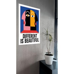 Quadro decorativo different is beautiful - 70x50cm Cor: moldura preta Informações do produto tire todas as suas dúvidas no descritivo abaixo: decoração para quarto, sala, cozinha, escritório, área gourmet e muito mais. Chega de paredes vazias medidas - cada peça tem 70x50cm . Material do papel - papel fotográfico brilhante de altíssima resolução acabamento - todos os quadros são acompanhados de vidro para proteção da imagem. - moldura em madeira maciça na cor preta ou branca conforme produto escolhido e pendurador. - os quadros são embalados de forma segura com plástico bolha com camada dupla de acordo com o tamanho dos quadros. - de 3 meses. Meu quadro chegou. Como posso fixá-lo Você precisa apenas de um martelo e um prego, pois os quadros já vão acompanhados de penduradores. Esta é a forma mais indicada. Como posso limpar meu quadro A limpeza é feita como um móvel comum da sua casa. Apenas um pano seco ou espanador são suficientes para tal Marca: Não Informado