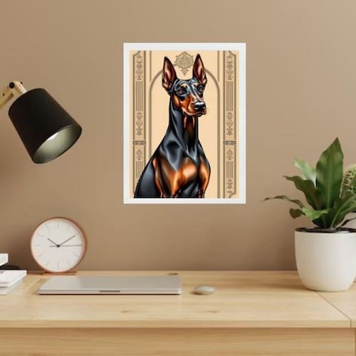 Quadro decorativo dobermann - art nouveau 33x24cm Cor: moldura preta Informações do produto tire todas as suas dúvidas no descritivo abaixo: decoração para quarto, sala, cozinha, escritório, área gourmet e muito mais. Chega de paredes vazias medidas - cada peça tem 33x24cm a4 . Material do papel - papel fotográfico brilhante de altíssima resolução acabamento - todos os quadros são acompanhados de uma película de acetato para proteção da imagem. - os quadros são embalados de forma segura com plástico bolha com camada dupla de acordo com o tamanho dos quadros. - de 3 meses. Meu quadro chegou. Como posso fixá-lo Você precisa apenas de um martelo e um prego, pois os quadros já vão acompanhados de penduradores. Esta é a forma mais indicada. Caso prefira, você pode utilizar uma fita dupla face neste caso, sugerimos de alta qualidade para evitar que descole e seu quadro caia . Como posso limpar meu quadro A limpeza é feita como um móvel comum da sua casa. Apenas um pano seco ou espanador são suficientes para tal Marca: Não Informado
