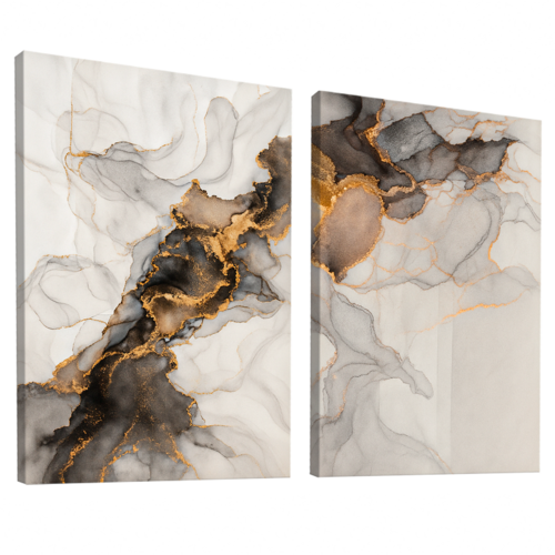 Quadro Decorativo Duo Abstrato Mármore Moderno Borda Infinita - 60x40cm -