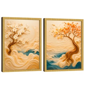 Quadro Decorativo Duo Árvore da Sabedoria 3D Moldura Dourada - 118x78cm -