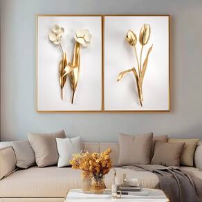 Quadro Decorativo Duo Flores de Ouro Moldura Dourada - 60x40 -