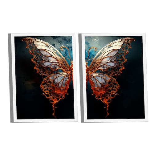 Dupla de Quadros Light Butterfly -- BR ARTES Moldura Branca - Médio 84x54 -