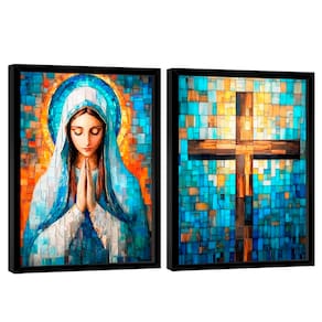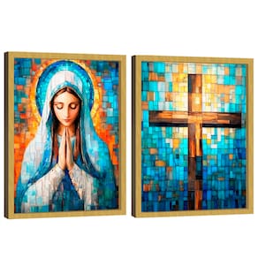 Quadro Decorativo Duo Maria e Cruz em Grid Art Moldura Dourada e Vidro - 60x40 -