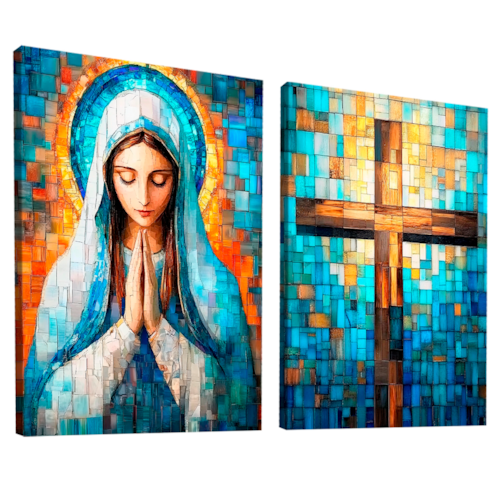 Quadro Decorativo Duo Maria e Cruz em Grid Art Borda Infinita - 150x100 -
