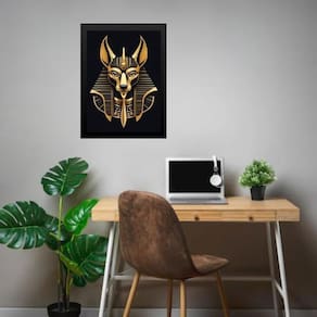 Quadro decorativo egípcio anubis - preto e dourado 24x18cm - com vidro Cor: moldura preta Informações do produto tire todas as suas dúvidas no descritivo abaixo: decoração para quarto, sala, cozinha, escritório, área gourmet e muito mais. Chega de paredes vazias medidas - cada peça tem 24x18cm a5 . Material do papel - papel fotográfico brilhante de altíssima resolução acabamento - todos os quadros são acompanhados de vidro para proteção da imagem. - moldura em madeira maciça na cor preta ou branca conforme produto escolhido e pendurador . - os quadros são embalados de forma segura com plástico bolha com camada dupla de acordo com o tamanho dos quadros. Garantia - garantia de 3 meses. Meu quadro chegou. Como posso fixá-lo Você precisa apenas de um martelo e um prego, pois os quadros já vão acompanhados de penduradores. Esta é a forma mais indicada. Como posso limpar meu quadro A limpeza é feita como um móvel comum da sua casa. Apenas um pano seco ou espanador são suficientes para tal