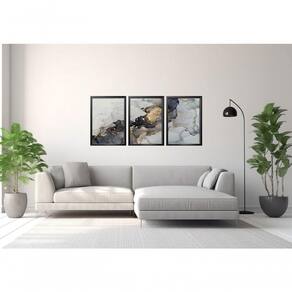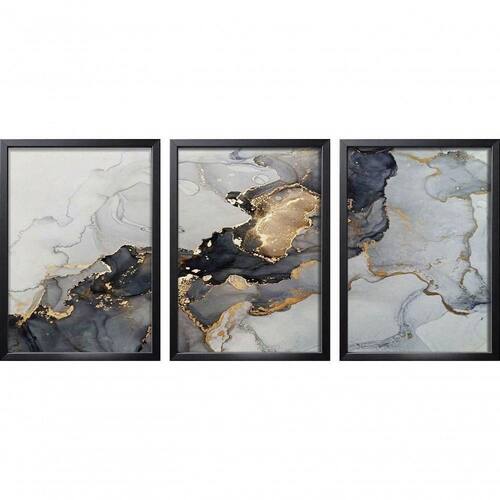 Quadro Decorativo Elegante Mármore Dourado Com Moldura Preto