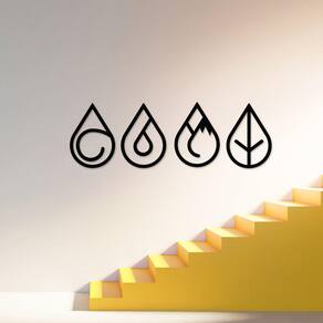 Especificações Técnicas: Medidas: 24x 35 cm cada quadro Material: mdf 3mm Cor: preto Tema: natureza Formas de instalação: basta utilizar fitas dupla face Quantidade: 4 unidades Características específicas: cada quadro representa um elemento da natureza: água, fogo, terra e ar.