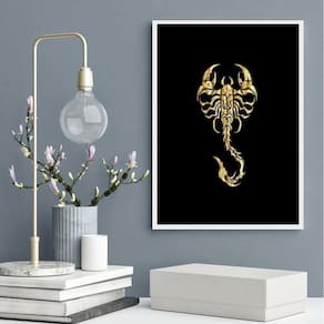 Quadro decorativo escorpião dourado 24x18cm Moldura: madeira preta Informações do produto tire todas as suas dúvidas no descritivo abaixo: decoração para quarto, sala, cozinha, escritório, área gourmet e muito mais. Chega de paredes vazias medidas - cada peça tem 24x18cm a5 . Material do papel - papel fotográfico brilhante de altíssima resolução acabamento - todos os quadros são acompanhados de uma película de acetato para proteção da imagem. - os quadros são embalados de forma segura com plástico bolha com camada dupla de acordo com o tamanho dos quadros. Garantia - garantia de 3 meses. Meu quadro chegou. Como posso fixá-lo Você precisa apenas de um martelo e um prego, pois os quadros já vão acompanhados de penduradores. Esta é a forma mais indicada. Caso prefira, você pode utilizar uma fita dupla face neste caso, sugerimos de alta qualidade para evitar que descole e seu quadro caia . Como posso limpar meu quadro A limpeza é feita como um móvel comum da sua casa. Apenas um pano seco ou espanador são suficientes para tal Ean: 7893607413464