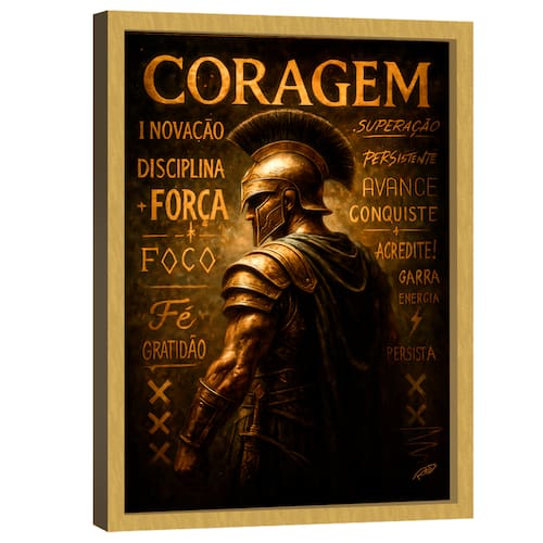 Quadro Decorativo Espartano Motivacional Moldura Dourada - 150x100cm -
