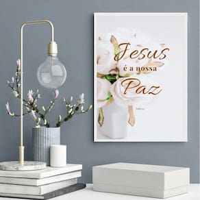 Quadro decorativo evangélico jesus é a nossa paz 45x34cm Moldura: madeira preta Informações do produto tire todas as suas dúvidas no descritivo abaixo: decoração para quarto, sala, cozinha, escritório, área gourmet e muito mais. Chega de paredes vazias. Medidas - cada peça tem 45x34cm a3 . Material do papel - papel fotográfico brilhante de altíssima resolução acabamento - todos os quadros são acompanhados de uma película de acetato para proteção da imagem. - os quadros são embalados de forma segura com plástico bolha com camada dupla de acordo com o tamanho dos quadros. Garantia - garantia de 3 meses. Meu quadro chegou. Como posso fixá-lo Você precisa apenas de um martelo e um prego, pois os quadros já vão acompanhados de penduradores. Esta é a forma mais indicada. Caso prefira, você pode utilizar uma fita dupla face neste caso, sugerimos de alta qualidade para evitar que descole e seu quadro caia . Como posso limpar meu quadro A limpeza é feita como um móvel comum da sua casa. Apenas um pano seco ou espanador são suficientes para tal Ean: 7890075932022
