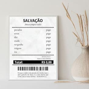 Quadro decorativo evangélico recibo 45x34cm Moldura: madeira preta Informações do produto tire todas as suas dúvidas no descritivo abaixo: decoração para quarto, sala, cozinha, escritório, área gourmet e muito mais. Chega de paredes vazias. Medidas - cada peça tem 45x34cm a3 . Material do papel - papel fotográfico brilhante de altíssima resolução acabamento - todos os quadros são acompanhados de uma película de acetato para proteção da imagem. - os quadros são embalados de forma segura com plástico bolha com camada dupla de acordo com o tamanho dos quadros. Garantia - garantia de 3 meses. Meu quadro chegou. Como posso fixá-lo Você precisa apenas de um martelo e um prego, pois os quadros já vão acompanhados de penduradores. Esta é a forma mais indicada. Caso prefira, você pode utilizar uma fita dupla face neste caso, sugerimos de alta qualidade para evitar que descole e seu quadro caia . Como posso limpar meu quadro A limpeza é feita como um móvel comum da sua casa. Apenas um pano seco ou espanador são suficientes para tal Ean: 7896370544649