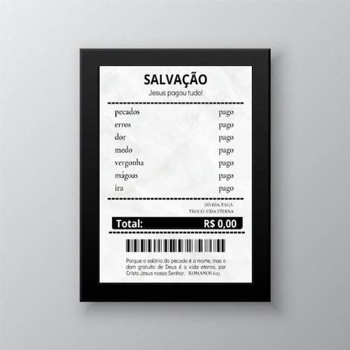 Quadro decorativo evangélico recibo 45x34cm Moldura: madeira preta Informações do produto tire todas as suas dúvidas no descritivo abaixo: decoração para quarto, sala, cozinha, escritório, área gourmet e muito mais. Chega de paredes vazias. Medidas - cada peça tem 45x34cm a3 . Material do papel - papel fotográfico brilhante de altíssima resolução acabamento - todos os quadros são acompanhados de uma película de acetato para proteção da imagem. - os quadros são embalados de forma segura com plástico bolha com camada dupla de acordo com o tamanho dos quadros. - de 3 meses. Meu quadro chegou. Como posso fixá-lo Você precisa apenas de um martelo e um prego, pois os quadros já vão acompanhados de penduradores. Esta é a forma mais indicada. Caso prefira, você pode utilizar uma fita dupla face neste caso, sugerimos de alta qualidade para evitar que descole e seu quadro caia . Como posso limpar meu quadro A limpeza é feita como um móvel comum da sua casa. Apenas um pano seco ou espanador são suficientes para tal Ean: 7896370544649