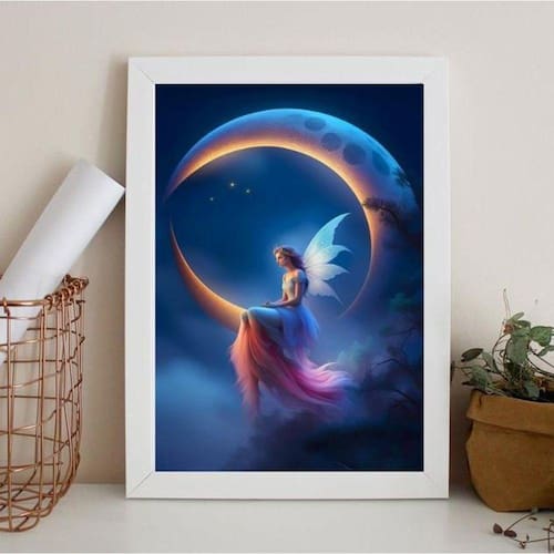 Garanta já o Quadro Decorativo Fada Com Lua 33X24Cm - Com Vidro e deixe sua decoração ainda mais encantadora.