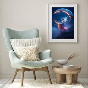 Quadro decorativo fada com lua - 60x48cm Moldura: madeira branca Informações do produto tire todas as suas dúvidas no descritivo abaixo: decoração para quarto, sala, cozinha, escritório, área gourmet e muito mais. Chega de paredes vazias medidas - cada peça tem 60x48cm . Material do papel - papel fotográfico brilhante de altíssima resolução acabamento - todos os quadros são acompanhados de vidro para proteção da imagem. - moldura em madeira maciça na cor preta ou branca conforme produto escolhido e pendurador. - paspatur branco com 7cm de largura - os quadros são embalados de forma segura com plástico bolha com camada dupla de acordo com o tamanho dos quadros. Garantia - garantia de 3 meses. Meu quadro chegou. Como posso fixá-lo Você precisa apenas de um martelo e um prego, pois os quadros já vão acompanhados de penduradores. Esta é a forma mais indicada. Como posso limpar meu quadro A limpeza é feita como um móvel comum da sua casa. Apenas um pano seco ou espanador são suficientes para tal Ean: 7895314684960