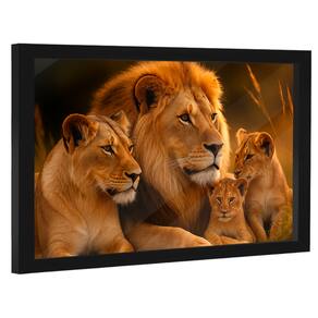 Quadro Decorativo Família Celestial de Leões Moldura Preta e Vidro - 150x100cm -