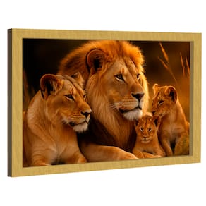 Quadro Decorativo Família Celestial de Leões Moldura Preta - 118x78cm -