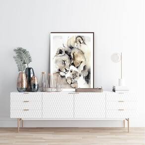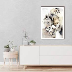 Quadro Decorativo Família de Leões Aquarela 70x100cm