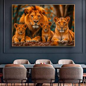 Quadro Decorativo Família De Leões Centrada