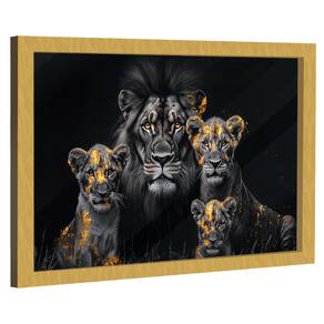 Quadro Decorativo Família de Leões Dark Borda Infinita - 118x78cm -