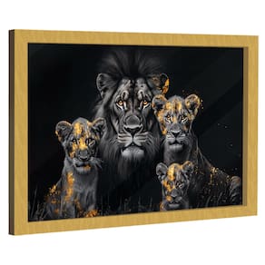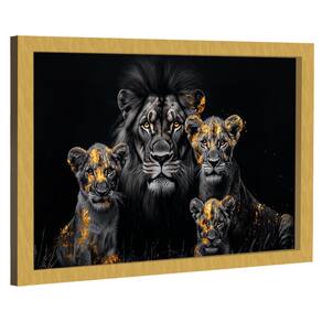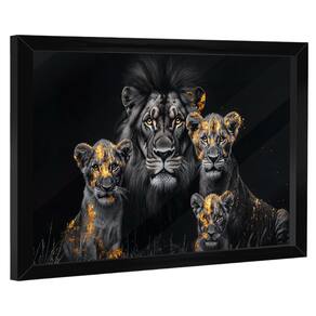 Quadro Decorativo Família de Leões Dark Moldura Preta e Vidro - 84x54cm -