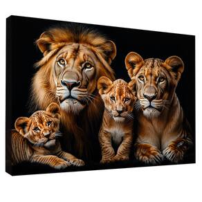 Quadro Decorativo Família de Leões no Preto Borda Infinita - 84x54cm -
