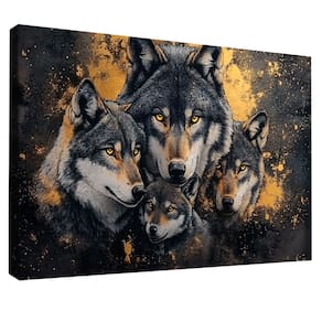 Quadro Decorativo Família de Lobos Moldura Dourada - 84x54cm -