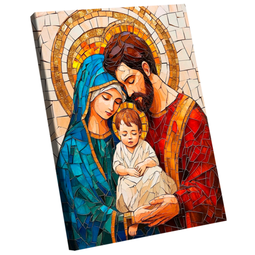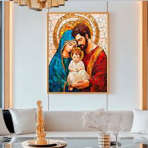 Quadro Decorativo Família Divina em Mosaico Borda Infinita - 60x40cm -
