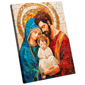 Quadro Decorativo Família Divina em Mosaico Borda Infinita - 84x54cm -