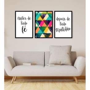 Uma parede bem decorada dá vida ao ambiente. Dê adeus para as paredes vazias e monótonas os quadros decorativos da império dos quadros são grandes aliados quando o assunto é decoração. Quadro decorativo fé gratidão rose 3p sem moldura 115x57 sala quarto é impresso em equipamento de alta resolução full hd , em vinil fosco e aplicados em mdf de 3mm com moldura e 6mm sem moldura . Os quadros têm o poder de valorizar os mais diversos ambientes e refletir com estilo a personalidade dos moradores. O quadro é de fácil fixação