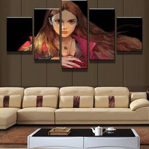 Quadro Decorativo Feiticeira-Escarlate 5 peças 130x65 em tec