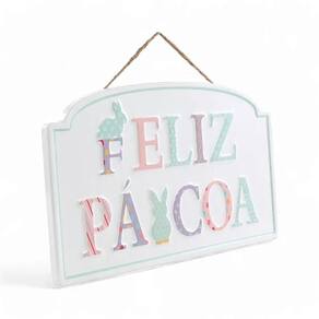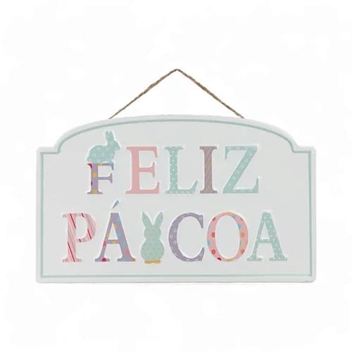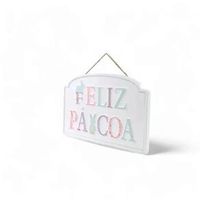 Material: Metal, garantindo durabilidade e um acabamento de qualidade.Medidas Aproximadas:Comprimento: 41 cmLargura: 25 cmDesign: Inclui a frase Feliz Páscoa em um estilo atrativo, embelezado com elementos decorativos temáticos, como coelhos e ovos.