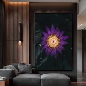 Quadro Decorativo Flor Nymphaea Caerulea Moldura Preta - 118x78cm -