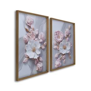 Quadro Decorativo Floral Artístico Modelo Flor de Porcelana com 3 Telas 60x90cm para Sala, Quarto, Banheiro, Escritório, Hall, Hall de Entrada, Estúdio, Salão, Clínica.