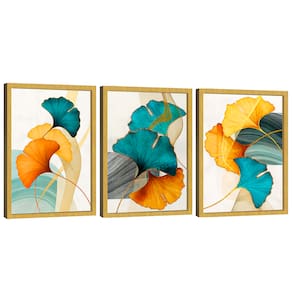 Quadro Decorativo Floral Azul Verde e Dourado Moldura Preta - 118x78cm -