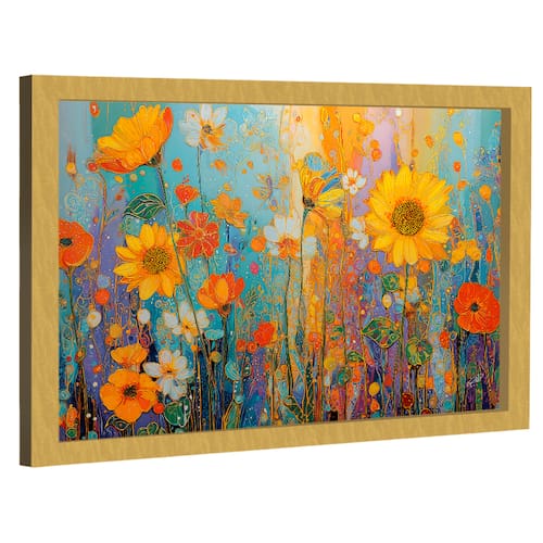 Quadro Decorativo Floral Moldura Dourada - 118x78cm -