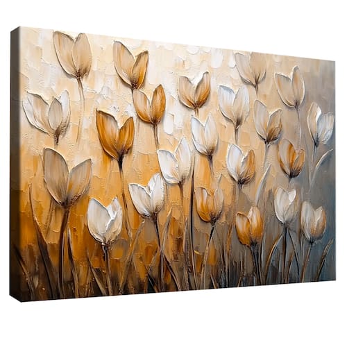 Quadro Decorativo Flores Abstratas Estilo Pintura Borda Infinita - 60x40cm -