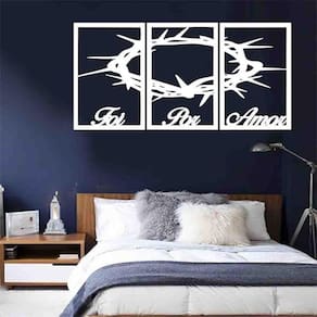 Quadro Decorativo Foi Por Amor Branco 6Mm Vazado - Mdf TAMANHO & INSTALAÇÃO: Tamanho total: 122cm comprimento X 60cm altura Com espaçamento recomendado de 1 cm entre peças, Peças laterais: 40x60 cm | Peça central: 40x60 cm Espaçamento entre as peças: 1 cm A instalação é bem simples, não será preciso fazer sujeira furando a parede pois utilizamos o método bem prático para instalar, contém fita dupla face 3M no verso do quadro. LIMPEZA DO PRODUTO Para limpeza, utilize apenas um pano umedecido com água sem produtos químicos para garantir a durabilidade. ACABAMENTO Nossos produtos são fabricados em MDF com espessura de 6mm cortados a laser. Desta forma terá um produto com acabamento de alta qualidade. Bordas/laterais serão na cor preta feito com a própria máquina de corte a laser, dando acabamento perfeito. GARANTIA / EMBALAGEM Embalagem reforçada e segura para que receba seu produto em perfeito estado.