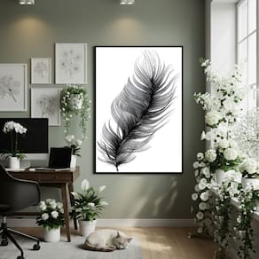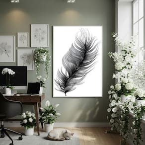Quadro Decorativo Folha Pena 70x50cm Mold Branca