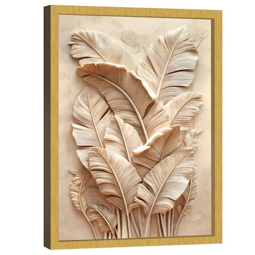 Quadro Decorativo Folhas 3D Moldura Dourada - 60x40cm -