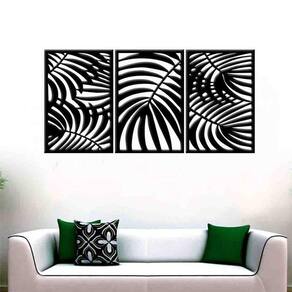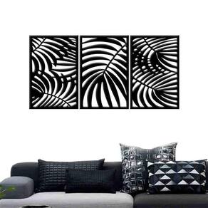 Quadro Decorativo Folhas 6Mm Vazado - Mdf TAMANHO & INSTALAÇÃO: Tamanho total: 122cm comprimento X 60cm altura Com espaçamento recomendado de 1 cm entre peças, Peças laterais: 40x60 cm | Peça central: 40x60 cm Espaçamento entre as peças: 1 cm A instalação é bem simples, não será preciso fazer sujeira furando a parede pois utilizamos o método bem prático para instalar, contém fita dupla face 3M no verso do quadro. LIMPEZA DO PRODUTO Para limpeza, utilize apenas um pano umedecido com água sem produtos químicos para garantir a durabilidade. ACABAMENTO Nossos produtos são fabricados em MDF com espessura de 6mm cortados a laser. Desta forma terá um produto com acabamento de alta qualidade. Bordas/laterais serão na cor preta feito com a própria máquina de corte a laser, dando acabamento perfeito. GARANTIA / EMBALAGEM Embalagem reforçada e segura para que receba seu produto em perfeito estado. Garantia de produto de qualidade ou seu dinheiro de volta.
