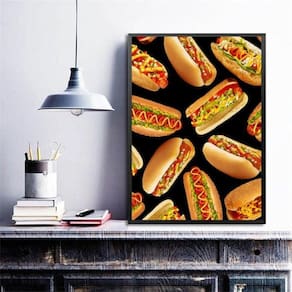 Quadro decorativo fotografia cachorro quente 45x34cm Moldura: madeira preta Informações do produto tire todas as suas dúvidas no descritivo abaixo: decoração para quarto, sala, cozinha, escritório, área gourmet e muito mais. Chega de paredes vazias. Medidas - cada peça tem 45x34cm a3 . Material do papel - papel fotográfico brilhante de altíssima resolução acabamento - todos os quadros são acompanhados de uma película de acetato para proteção da imagem. - os quadros são embalados de forma segura com plástico bolha com camada dupla de acordo com o tamanho dos quadros. Garantia - garantia de 3 meses. Meu quadro chegou. Como posso fixá-lo Você precisa apenas de um martelo e um prego, pois os quadros já vão acompanhados de penduradores. Esta é a forma mais indicada. Caso prefira, você pode utilizar uma fita dupla face neste caso, sugerimos de alta qualidade para evitar que descole e seu quadro caia . Como posso limpar meu quadro A limpeza é feita como um móvel comum da sua casa. Apenas um pano seco ou espanador são suficientes para tal