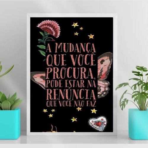 Adquira agora o Quadro Decorativo Frase Mudança Renuncia 24X18Cm e transforme sua parede em uma verdadeira obra de arte. Garanta já o seu! Ean: 7890553701386