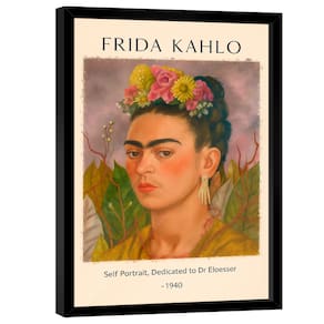 Quadro Decorativo Frida Kahlo Self Portrait, Dedicated to Dr Eloesser Moldura Preta - 84x54cm -
