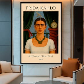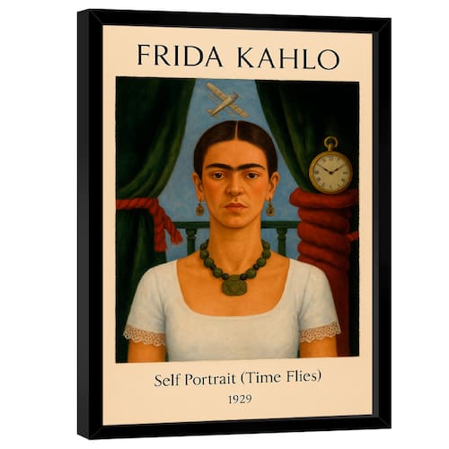 Quadro Decorativo Frida Kahlo Self Portrait, Time Flies Moldura Preta - 180x105cm -