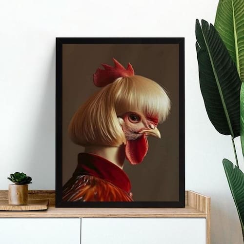 Quadro decorativo galinha disfarçada 33x24cm Cor: moldura preta Informações do produto tire todas as suas dúvidas no descritivo abaixo: decoração para quarto, sala, cozinha, escritório, área gourmet e muito mais. Chega de paredes vazias medidas - cada peça tem 33x24cm a4 . Material do papel - papel fotográfico brilhante de altíssima resolução acabamento - todos os quadros são acompanhados de uma película de acetato para proteção da imagem. - os quadros são embalados de forma segura com plástico bolha com camada dupla de acordo com o tamanho dos quadros. - de 3 meses. Meu quadro chegou. Como posso fixá-lo Você precisa apenas de um martelo e um prego, pois os quadros já vão acompanhados de penduradores. Esta é a forma mais indicada. Caso prefira, você pode utilizar uma fita dupla face neste caso, sugerimos de alta qualidade para evitar que descole e seu quadro caia . Como posso limpar meu quadro A limpeza é feita como um móvel comum da sua casa. Apenas um pano seco ou espanador são suficientes para tal Ean: 7891234530516