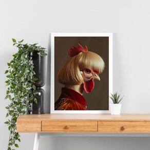 Quadro decorativo galinha disfarçada 45x34cm - com vidro Cor: moldura branca Informações do produto tire todas as suas dúvidas no descritivo abaixo: decoração para quarto, sala, cozinha, escritório, área gourmet e muito mais. Chega de paredes vazias medidas - cada peça tem 45x34cm a3 . Material do papel - papel fotográfico brilhante de altíssima resolução acabamento - todos os quadros são acompanhados de vidro para proteção da imagem. - moldura em madeira maciça na cor preta ou branca conforme produto escolhido e pendurador . - os quadros são embalados de forma segura com plástico bolha com camada dupla de acordo com o tamanho dos quadros. Garantia - garantia de 3 meses. Meu quadro chegou. Como posso fixá-lo Você precisa apenas de um martelo e um prego, pois os quadros já vão acompanhados de penduradores. Esta é a forma mais indicada. Como posso limpar meu quadro A limpeza é feita como um móvel comum da sua casa. Apenas um pano seco ou espanador são suficientes para tal